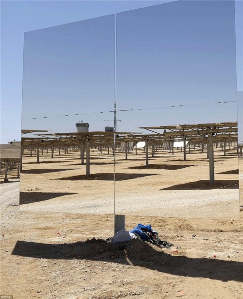 装机121MW的Ashalim1塔式光热电站位于以色列在内盖夫(Negev)沙漠,这座塔式光热电站总占地面积为3.15平方公里,场地中央矗立着Ashalim塔,高240米——是世界上最高的集热塔,塔底将安装约5.5万面镜子,占地面积约400个足球场大小,这一浩大的工程构成了沙漠中的一幅奇景。