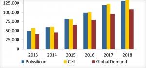 太阳能产业内的年需求量水平将比第三方观察机构和各领先零部件供应商所预计的更早地达到100GW。在2018年,太阳能产业将实现100GW以上太阳能组件出货量,同时在2017年,这一数字将轻而易举地超过90GW。