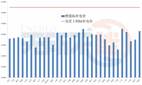 目前全国各地区的燃煤标杆电价从0.26元/千瓦时到0.44元/千瓦时不等,即使是电价最高的湖南地区的0.44元/千瓦时,也远低于最低的光伏标杆电价。