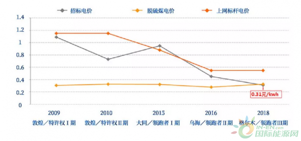 通过更优的设计和更低的零部件价格,各国上网电价持续降低,如印度3.57美分/kWh、埃及2.791美分/kWh、沙特1.79美分/kWh,“平价上网”浪潮席卷全球。在中国,2018年12月29日,由阳光电源联合开发建设的青海格尔木500MW项目上网电价仅为0.31元/kWh,低于当地脱硫煤标杆上网电价(0.3247元/kWh),开创了国内光伏平价上网的先例,为平价上网提供了典型示范。