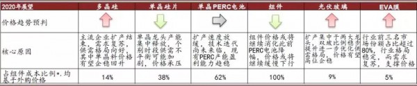 对于行业各子板块产能扩张后的竞争格局,中金研报认为,光伏玻璃和硅料在明年1季度和4季度均有涨价的可能;而PERC电池由于目前企业扩产相对谨慎,因此明年价格相对企稳,只会随硅片价格变动;单晶硅片由于新进入者涌入且成本较低将在2季度开始出现价格下跌。