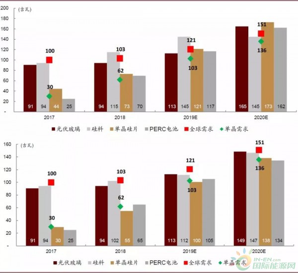 2020年各环节扩产展望:年末标称名义产能(上图),预期产量(下图)
