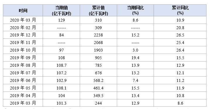 一季度,全国规上口径太阳能发电310亿千瓦时,累计增长10.9%,持续保持两位数快速增长。新冠肺炎疫情和设备产能不足等影响,太阳能发电建设进度放缓。