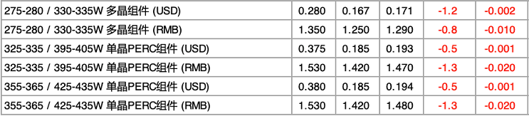 275-280/330-335Wp 多晶组件:1.290元/Wp;