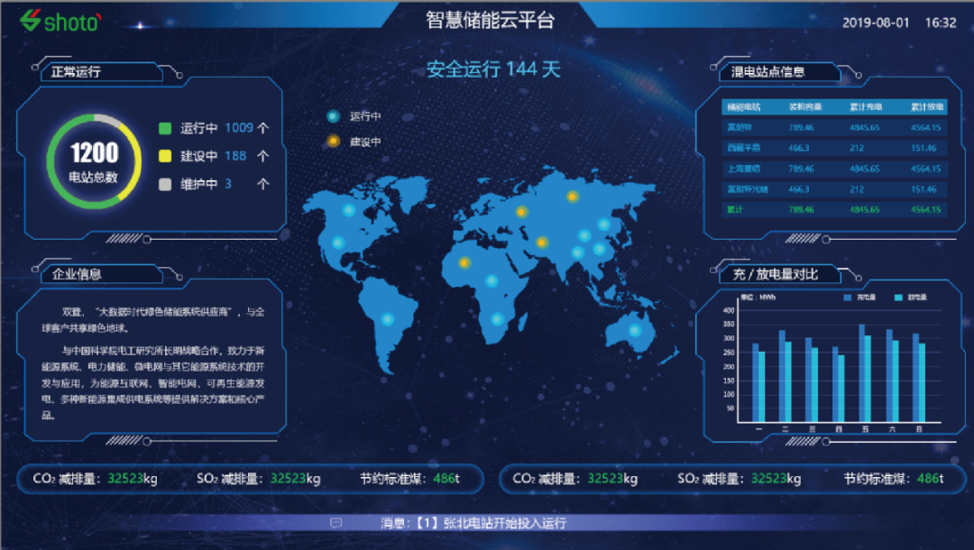 智慧储能系统运维大数据云平台:对储能系统实现全生命周期管理,实现远程智能化运维,可同时管控1000+站点。