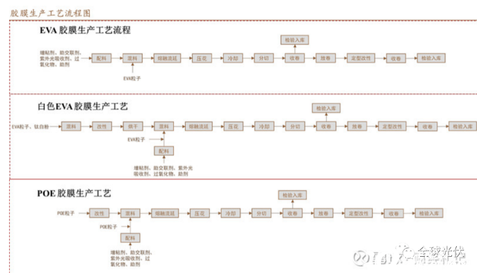 由于光伏组件需要在户外环境下连续运营 25 年以上,胶膜的品质与组件的可靠性直接相关,如果在电站运营期间胶膜发生黄变、龟裂等现象,将会直接影响组件的发电效率。因此尽管胶膜成本绝对价值不高,但是直接决定光伏组件产品质量、使用寿命等。