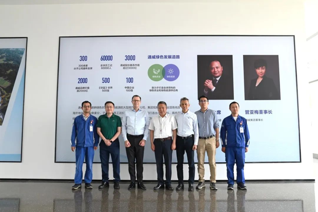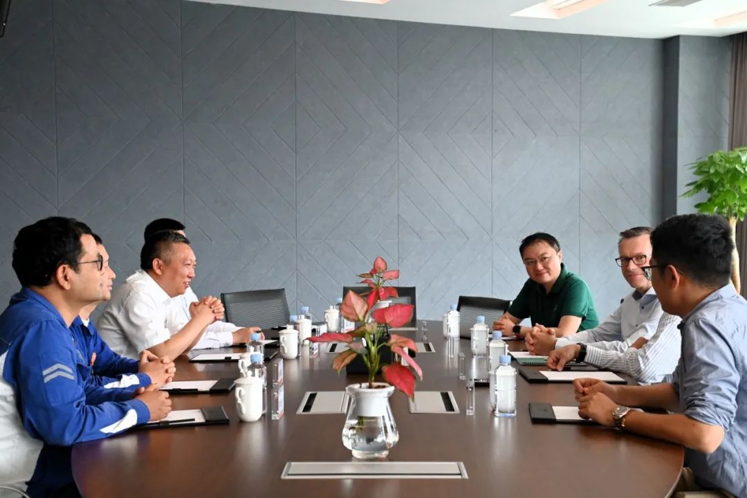 Thomas Ortenberg一行首先前往永祥数字展厅进行参观,随后前往能源科技厂前区行政楼参观。座谈会上,甘总对Thomas Ortenberg一行的到来表示了热烈的欢迎,并对永祥能源科技目前的生产及技术发展情况进行了简要介绍。