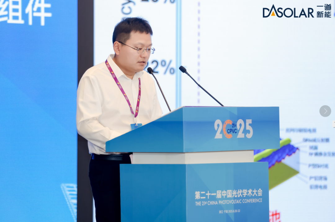 近日,第21届中国光伏学术大会(CPVC-21)在浙江宁波成功举办。一道新能中央研究院总经理章康平先生应邀出席,并发表了《强TOPCon根基,拓DBC新局:高效光伏技术的多维创新与产业化路径》的特邀学术报告,分享了一道新能高效DBC电池的创新路径,同时发布了27.77%的DBC电池效率的最新成果。