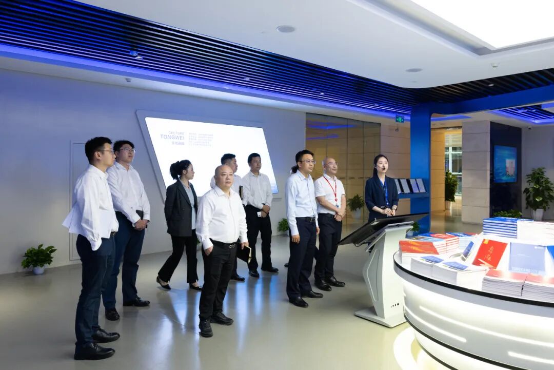 来宾一行首先参观了通威体验中心,详细了解了通威在绿色农业与绿色能源领域的产业发展成果,重点听取了公司在高纯晶硅、太阳能电池及组件、光伏电站等光伏新能源全产业链的布局情况。民生银行领导对通威在新能源领域的技术实力与产业规模表示高度认可。
