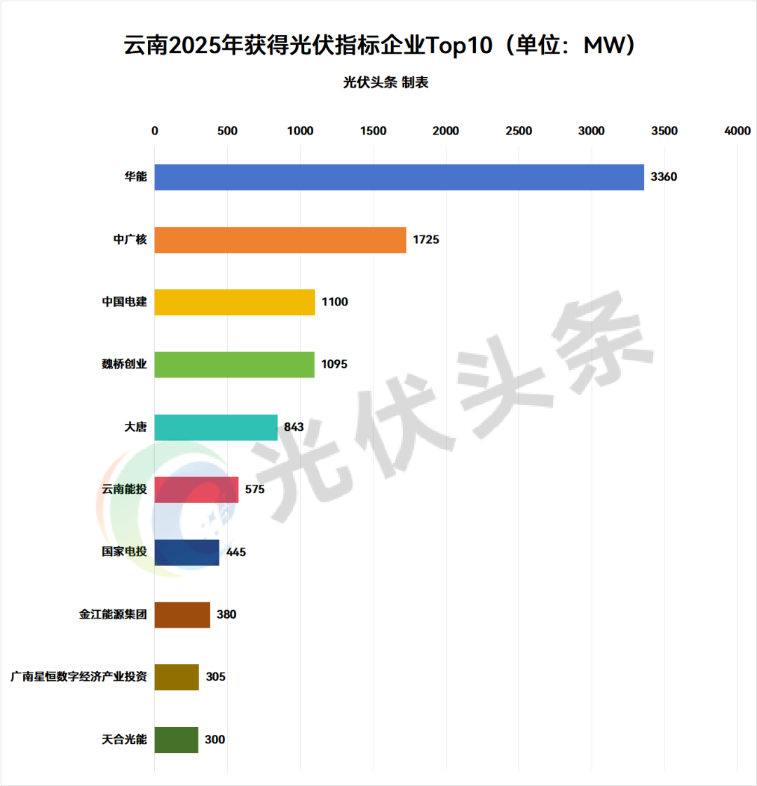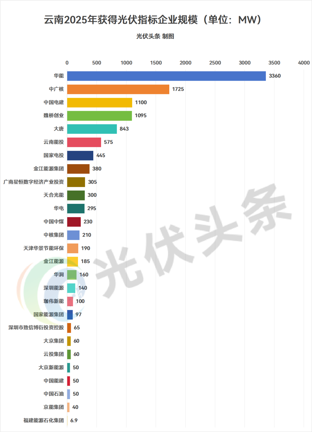 其中,华能以3360MW排名第一,中广核以1725MW位列第二,中国电建以1100MW排名第三。魏桥创业、大唐、云南美科&华能、云南能投、隆基&华能、正泰&中广核、国家电投、金江能源集团等排名靠前。