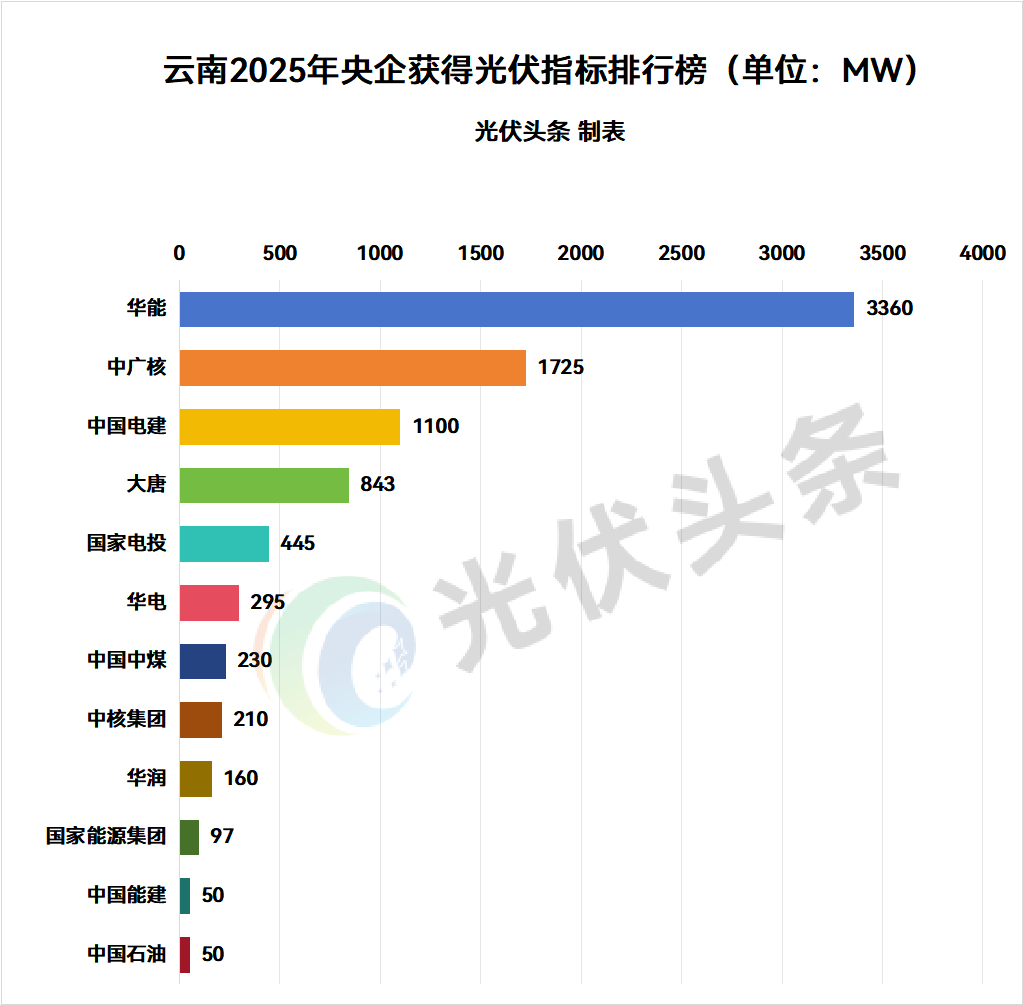 具体到央企方面,2025年华能、中广核、中国电建、大唐、国家电投、华电、中国中煤、中核集团、华润、国家能源集团、中国能建、中国石油等12家央企获得云南光伏指标,规模合计8565MW,占比54.86%。(注:不包含含央企的联合体中标规模)