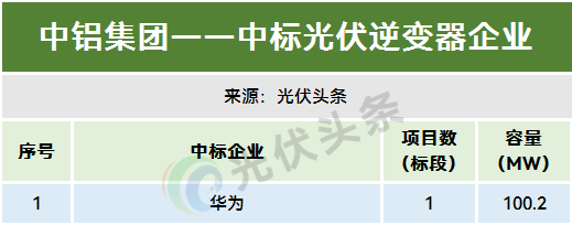 3月25日,中铝集团中色十二冶金建设有限公司潞城100MW智慧能源一体化光伏发电项目逆变器设备采购公示中标人,华为成为最终赢家。