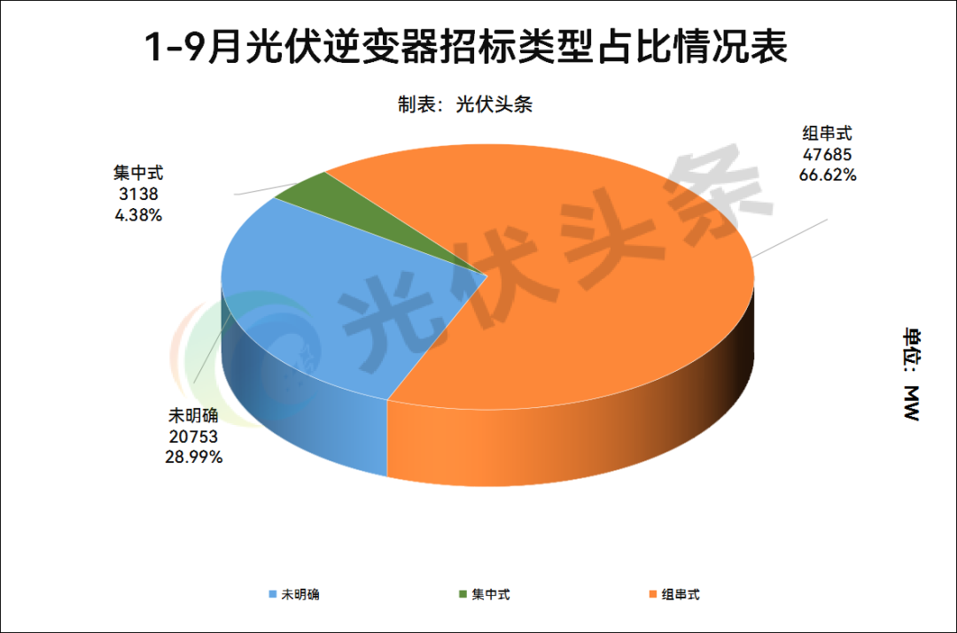 5、在技术路线上,1-9月定标的光伏逆变器项目之中,组串式逆变器合计容量151.21GW,占比达到71.86%。