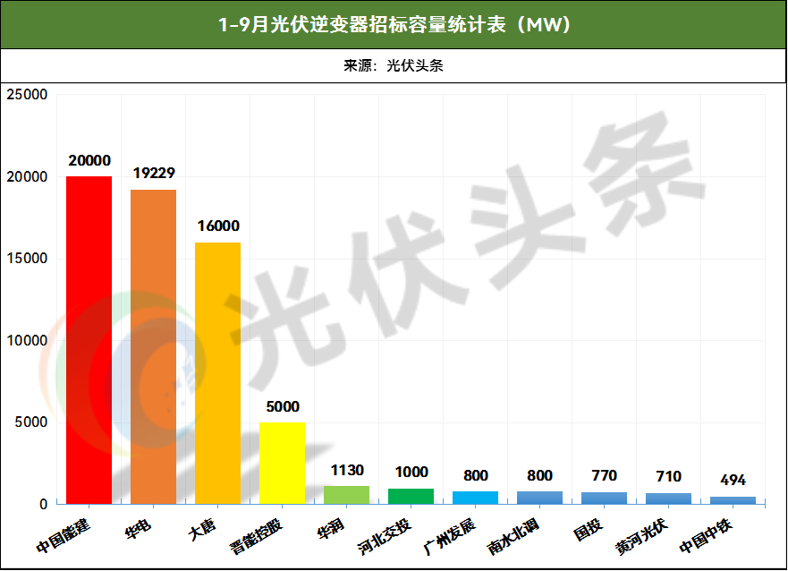 光伏头条通过分析发现1-9月央国企招标中,光伏逆变器招投标市场呈现如下趋势和特点: