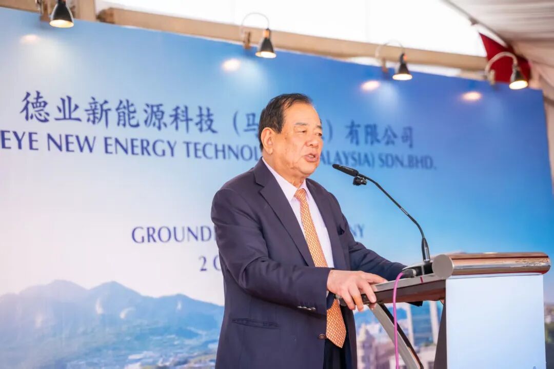 德业股份董事长张和君先生亲临现场并主持动土仪式。他在致辞中表示:“柔佛工厂的建成,将对德业的国际化运营产生深远影响。它不仅是公司贴近市场、服务区域客户的重要支点,也是我们优化全球供应链、增强经营韧性的关键战略举措。这座工厂将帮助我们更好地应对国际市场变化,为全球绿色能源产业的发展注入稳定而强劲的德业力量。” 张和君董事长同时对项目的顺利推进表达殷切期望,祝愿工程早日建成并投产达效。
