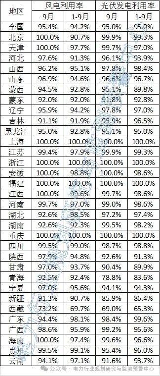 数据显示,2025年9月,全国风电、光伏的利用率分别为95.4%、95.0%;2025年1-9月,全国风电、光伏的利用率分别为94.2%、95.0%。