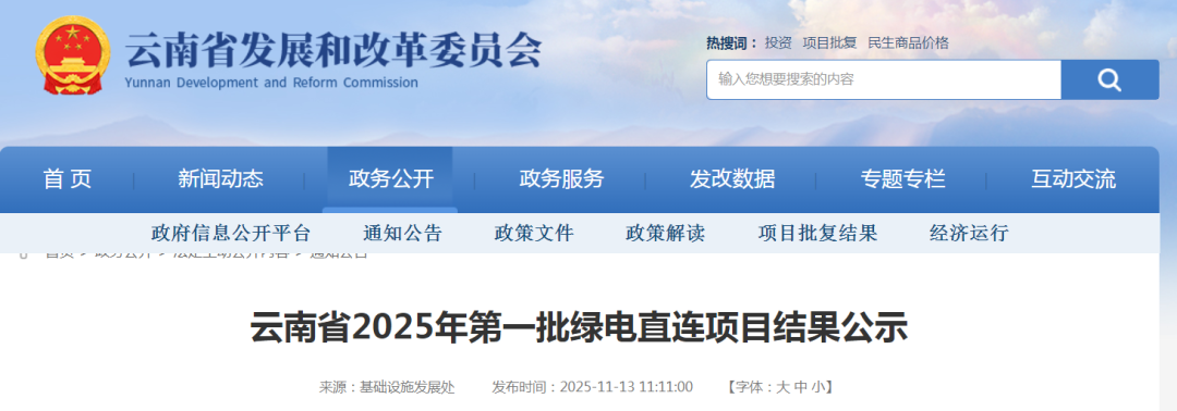 云南省2025年第一批绿电直连项目结果公示