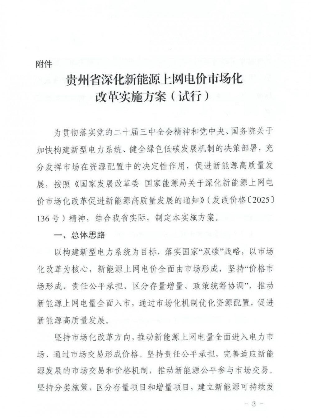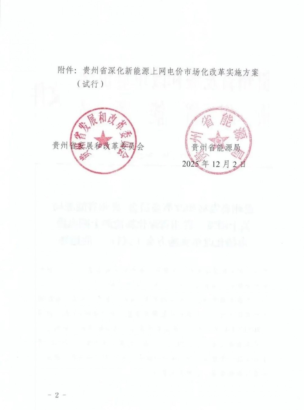 光伏头条获悉,12月3日,贵州省发展和改革委员会、贵州省能源局发布关于印发《贵州省深化新能源上网电价市场化改革实施方案(试行)》的通知。