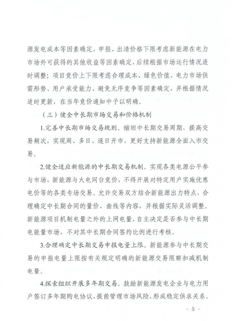 文件表示,集中式光伏、集中式风电、分布式光伏、分散式风电等所有风电、太阳能发电项目,上网电量全部进入电力市场,上网电价通过市场交易形成。参与跨省跨区交易的新能源电量,上网电价和交易机制按照国家跨省跨区送电相关政策执行。