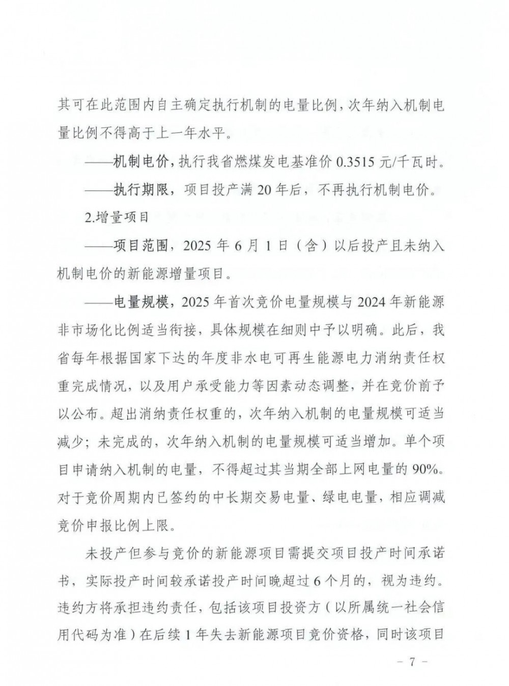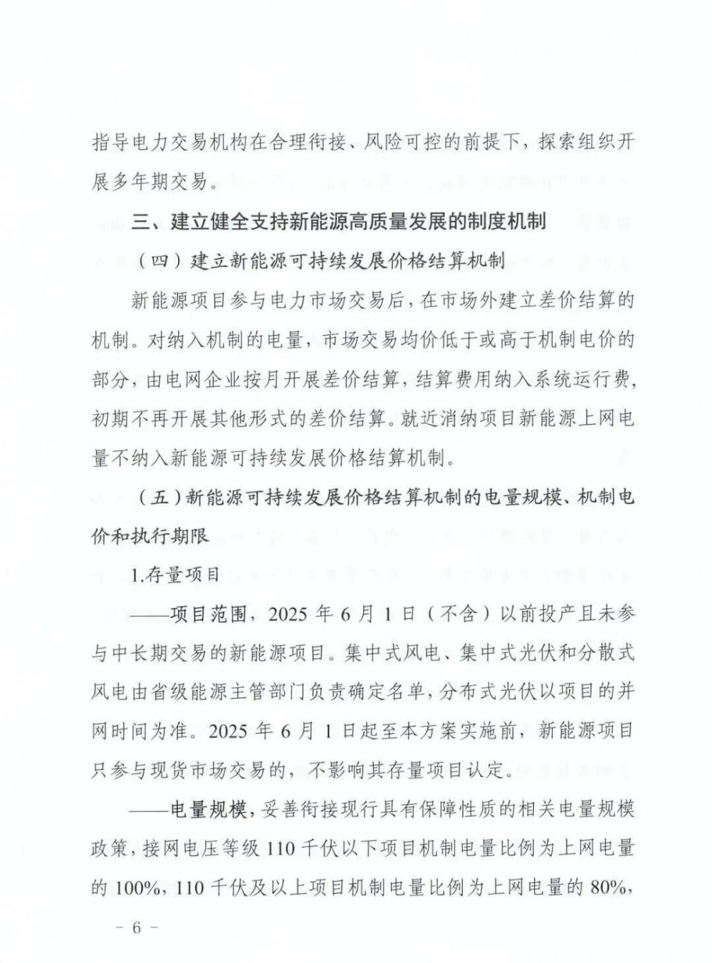 项目范围:2025年6月1日(含)以后投产且未纳入机制电价的新能源增量项目。