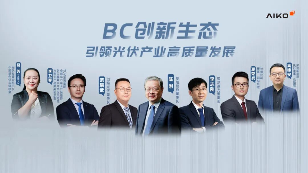 中国绿色供应链联盟光伏专委会秘书长吕芳主持对话。爱旭股份董事长陈刚,帝尔激光董事长李志刚,创维光伏董事长范瑞武,拉普拉斯董事、副总经理夏荣兵,彩虹新能源执行董事、总经理高锋安,德国莱茵TÜV集团全球电力电子产品服务副总裁兼大中华区太阳能与商业产品服务副总裁李卫春等BC产业链各环节的领军者汇聚,共同探讨BC技术如何推动光伏产业高质量发展。