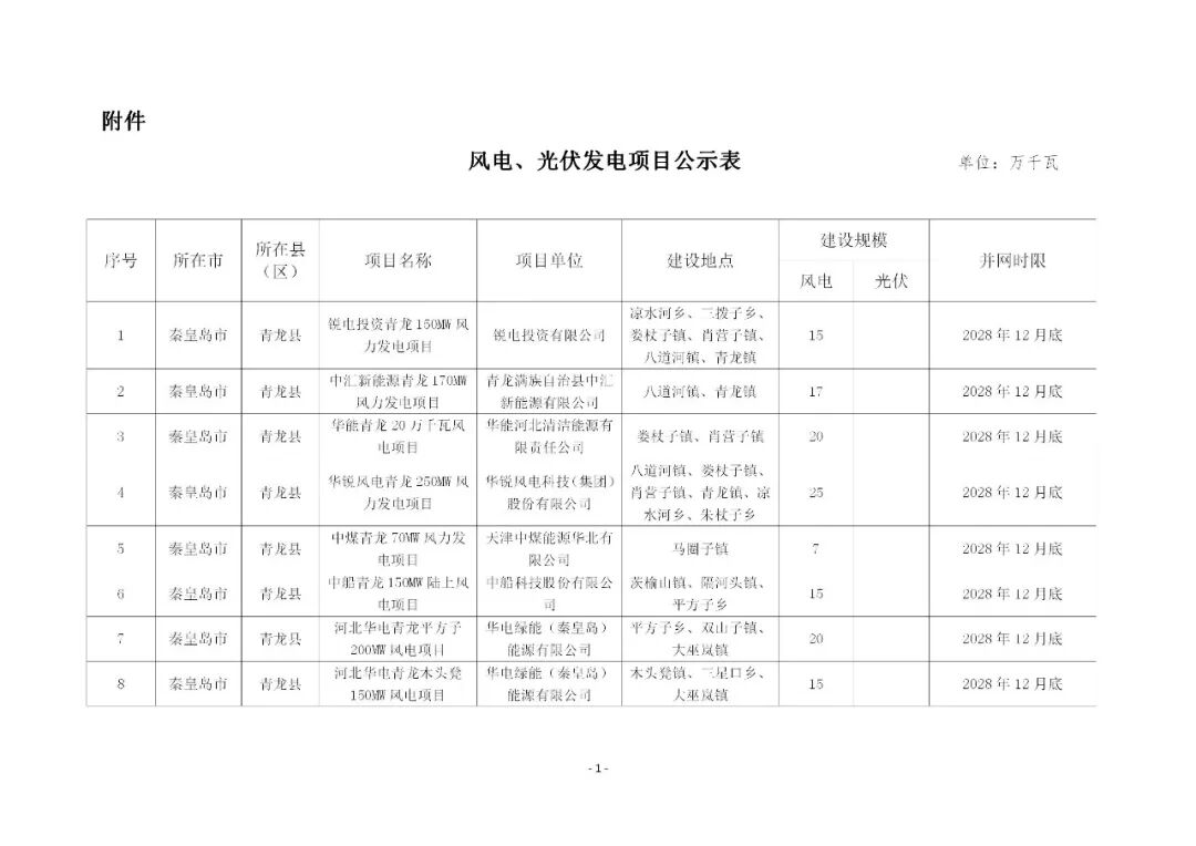 河北省2025年风电、光伏发电年度开发建设方案第三批部分拟安排项目情况公示