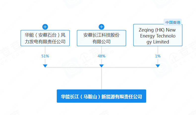 企查查股权穿透显示,该公司由华能国际全资子公司华能(安徽石台)风力发电有限责任公司、安徽长江科技股份有限公司等共同持股。