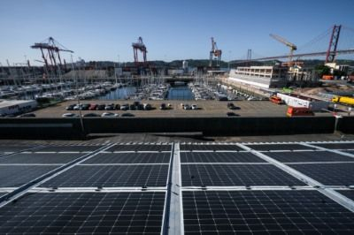 在全球能源转型与碳中和目标的驱动下,欧洲正加速推进交通物流领域的绿色化进程。上迈新能源正以轻质光伏技术赋能欧洲绿色交通物流版图。在里斯本港口,上迈eArc组件为自动化码头提供光伏解决方案,凭借2.8kg/㎡重量,完美适配港口结构,助力港口实现低碳运行;