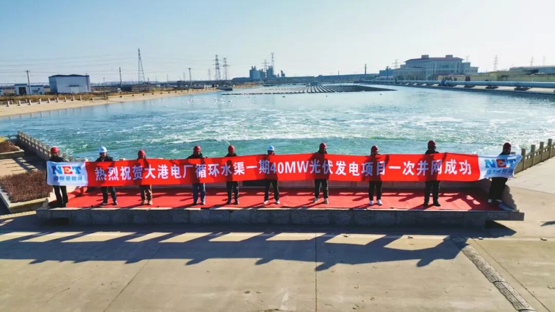 全国首例适配高流速、海水环境的标杆工程 —— 大港电厂循环水渠一期 40MW 光伏发电项目,经过一个多月的攻坚冲刺,12月31日成功全容量并网发电!