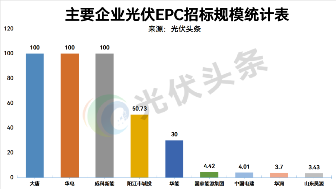 光伏头条根据公开信息统计,中标方面,本周浙能集团、华电、大唐、国家能源集团、广德经开集团、广州发展、湖北旭延新能源有限公司、四川森年新能源科技有限公司等企业发布了16个中标项目,总规模2449.16MW。其中,浙能集团以556.8MW排名第一,华电以516.01MW排名第二,大唐以470.8MW位列第三。