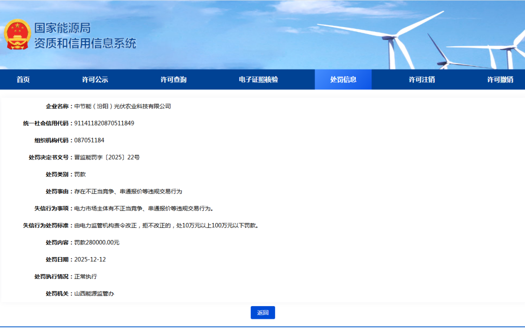 光伏头条获悉,近日,信用能源网站公示山西能源监管办行政处罚决定。