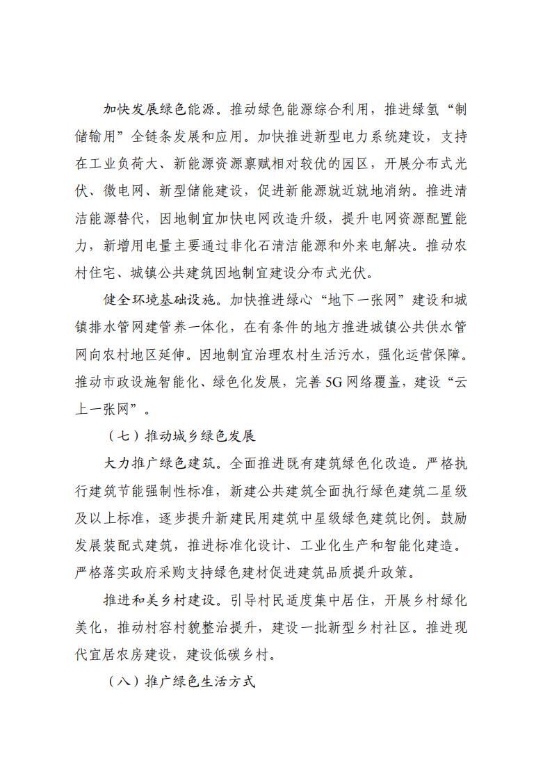 文件指出,加快发展绿色能源。推动绿色能源综合利用,推进绿氢“制储输用”全链条发展和应用。加快推进新型电力系统建设,支持在工业负荷大、新能源资源禀赋相对较优的园区,开展分布式光伏、微电网、新型储能建设,促进新能源就近就地消纳。推进清洁能源替代,因地制宜加快电网改造升级,提升电网资源配置能力,新增用电量主要通过非化石清洁能源和外来电解决。推动农村住宅、城镇公共建筑因地制宜建设分布式光伏。